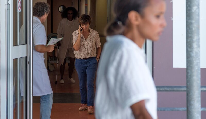 Um mehr über den Tod eines Familienvaters zu erfahren, müssen Gaëlle Crivelli (Beatrice de la Boulaye, l.) und Mélissa Sainte-Rose (Sonia Rolland, r.) dessen Angehörige auf einer Weihnachtsfeier befragen.
