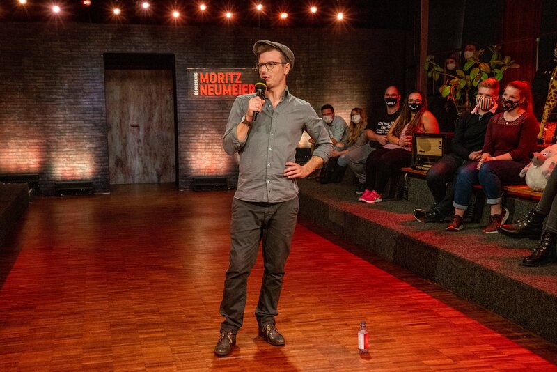 Moritz Neumeier bringt dem Publikum den Artikel 3 des Grundgesetzes näher und zeigt auf, dass in der Praxis dieses Versprechen leider zu oft gebrochen wird.