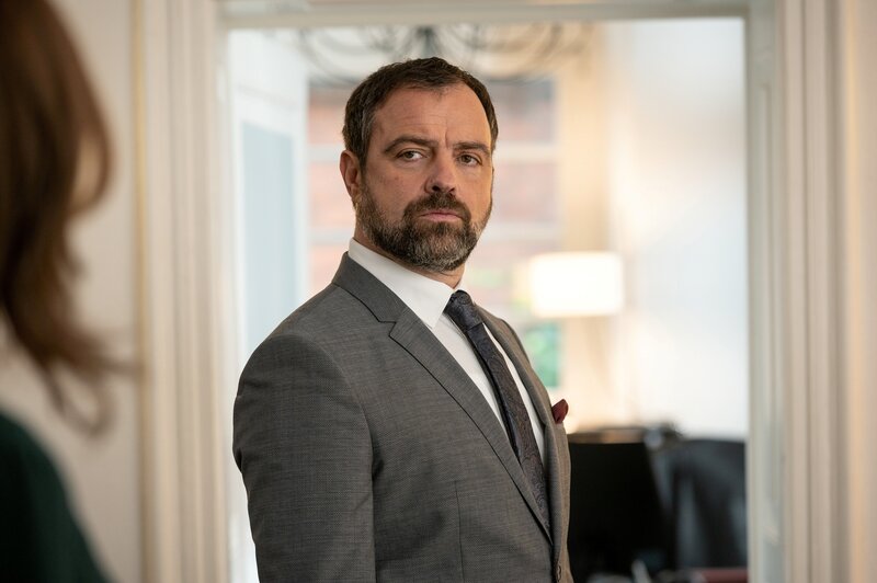 Die Tochter eines ehemaligen Chefs von Wilsberg, Julia Eberty-Niehoff (Nina Kronjäger, l.), leitet mit ihrem Mann Hartmut Niehoff (Juergen Maurer, r.) eine renommierte Kanzlei. Niehoff ist der Anwalt, den Ekkis Cousine Steffi von ihrem Arbeitgeber, der Großbäckerei Barkland, zur Seite gestellt bekommt.