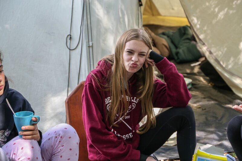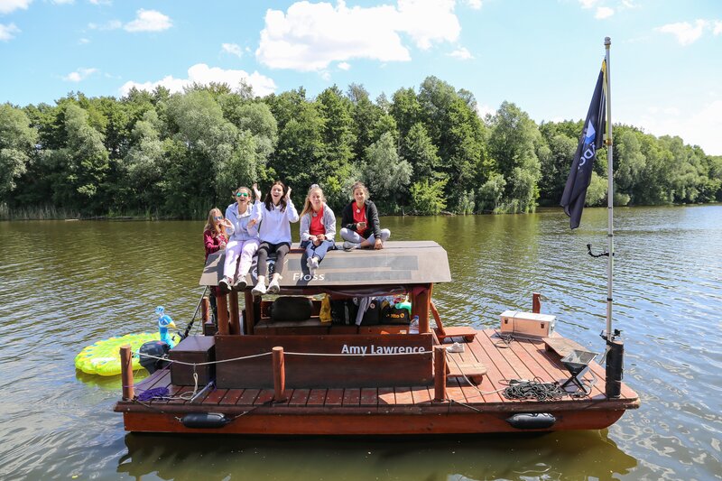 Tag 6: Die Nacht alleine im Zelt ist geschafft. Die Mädchen machen sich auf ihrem Floß auf den Heimweg. Dabei treffen sie ein paar Jungs, mit denen sie sich für den Abend verabreden. Die Mädels erscheinen mit Zuckerwatte als Gastgeschenk auf einer Dorfparty. Die Jugendlichen tauschen sich über Hobbies und ihr Leben aus. Dabei lässt ein Junge die Muskeln spielen, um die Mädels zu beeindrucken.
