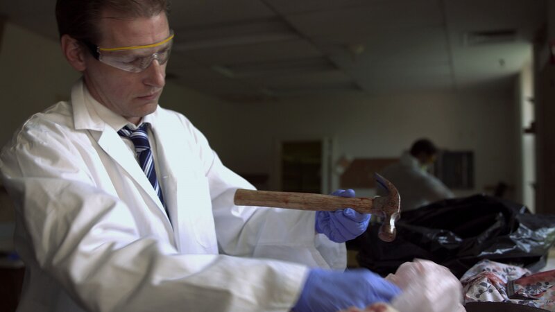 Ein Gerichtsmediziner untersucht den Hammer
