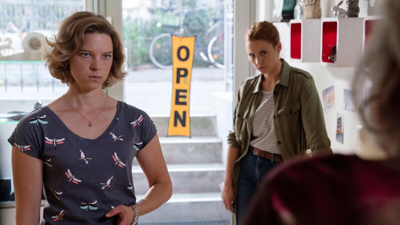• Anne (Lieselotte Krieger, l.) und Ben Bremer (Malte Thomsen, r.) sind im Laden von Karin Struvel (Doris Kunstmann, M.).