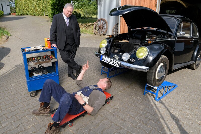 • Oberstaatsanwalt Bernd Reuther (Rainer Hunold, l.) spricht mit Matthias Falk (Gerdy Zint, r.).