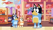 Bluey und Bingo spielen "Das Schweigespiel" und wollen Dad sagen, welches Spielzeug er kaufen soll. Am Ende seiner Kräfte spannt Dad den neuen Verkäufer Alfie ein, um die Pantomime zu interpretieren.