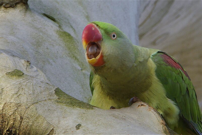 • Halsbandsittiche erobern die Wipfel der Stadtbäume.
