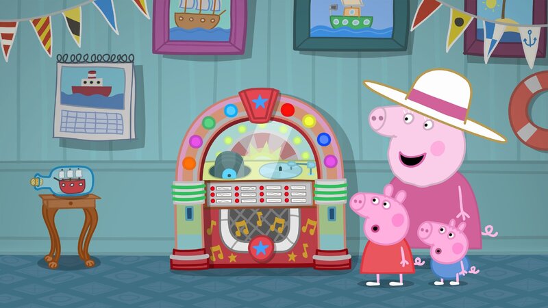 Peppa und Schorsch verbringen den Tag mit Oma und Opa Wutz beim Segeln. Als sie einen Stop beim Clubhaus einlegen, stoßen sie dort auf eine eingestaubte Musikbox. Sie spielen Musik, tanzen und tauschen sich über ihre Lieblingsmusik aus.