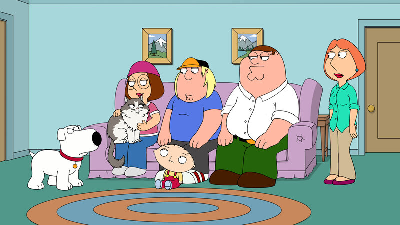 (v.l.n.r.) Brian Griffin; Pouncey; Meg Griffin; Chris Griffin; Stewie Griffin; Peter Griffin; Lois Griffin