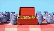 Auf der chinesischen Mauer entdecken die Lemminge eine Karre mit einer Box voller Sesamnugat. Doch bevor sie es genießen können, schnappt Grizzy ihnen die Box weg und isst das Nugat selbst.