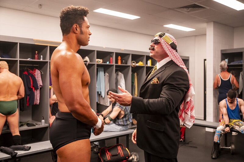 • YOUNG ROCK -- "Corpus Christi" Episode 211 -- Pictured: (l-r) Uli Latukefu as Dwayne, Brett Azar as Iron Sheik