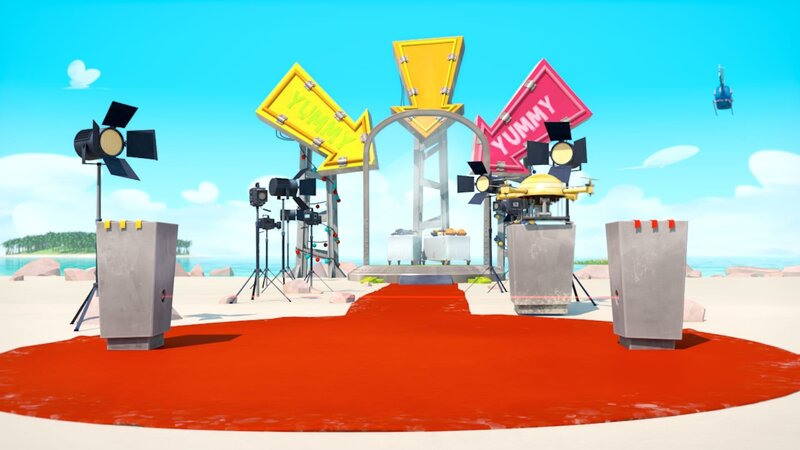 Ein Hubschrauber hinterlässt am Strand Utensilien für ein Fernseh-Spiel, und zwar eine Menge Lebensmittel - die jedoch eingeschlossen sind. Um an die Schlüssel und das Essen zu kommen, müssen die Teilnehmer unter Aufsicht einer Drohne Team-Wettkämpfe gewinnen. Die Lemminge bilden das gelbe Team. Das rote Team besteht aus Grizzy, einem Ruder und einer verblüfften Krabbe!...
