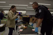 Customs and Border Protection officer Antonio Condello investigates suspicious products in the airport mailroom.