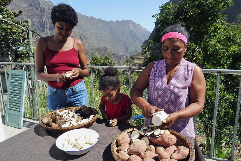 Auf Santo Antão, der zweitgrößten Insel der Kapverden, wachsen mannshohe Kaffeesträucher. Dies sei der beste Kaffee der Welt, behaupten Kenner. Doch nicht nur aufs Kaffeekochen versteht man sich hier. Regionale Produkte wie Maniok, Yams, Süßkartoffeln und Njam, wie die Tarowurzel hier heißt, kommen auf den Tisch. Cachupa, ein deftiger Eintopf, ist das Nationalgericht.