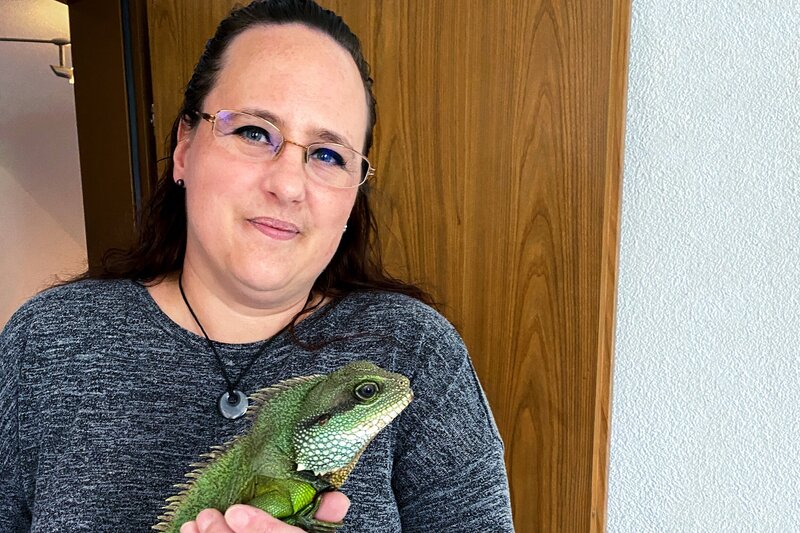 Biggi Keller vom «Verein AquaTerra-Herz» mit Linn, einer Wasseragame