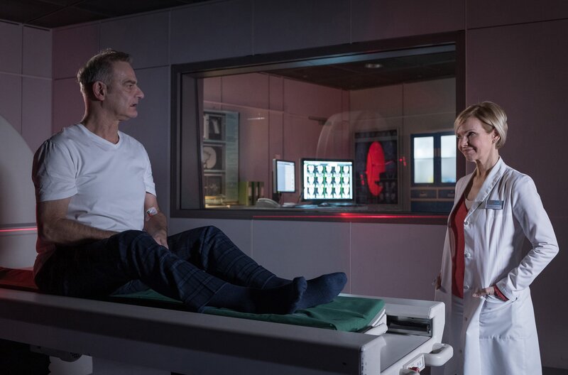 • Bei weiteren Untersuchungen hat Dr. Kaminski (Udo Schenk) festgestellt, dass es einige Werte bei Saskia Spengler (Dagny Dewath) gibt, die nicht im Normalbereich liegen. Als nächsten Schritt würde er gern ein Schädel-CT durchführen. So sehr das Saskia Spengler sorgt und verunsichert, sie fühlt sich bei Kaminski in den besten Händen. Mit einem Gespräch über Tango schafft er es, ihr die Angst zu nehmen.