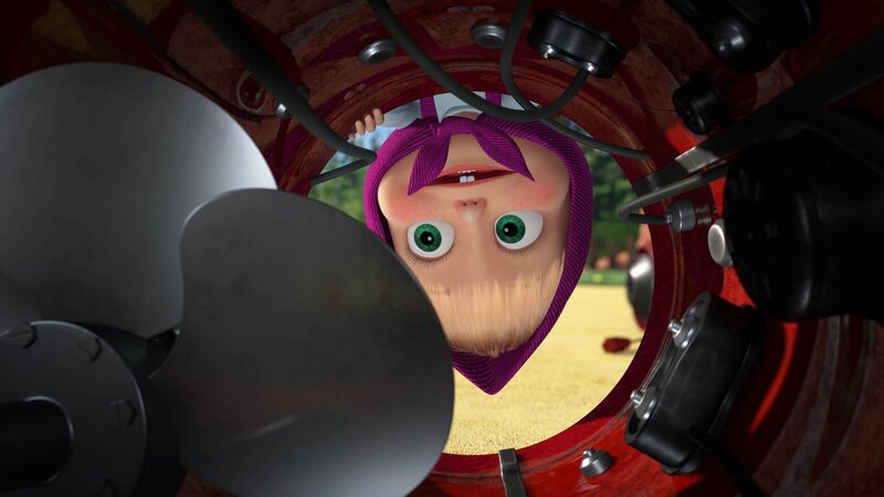 Leider benutzt Mascha beim Flugzeug des Pinguins Teile des Staubsaugers und des Rasensprengers, was die Flugeigenschaften des Geräts stark beeinträchtigt.