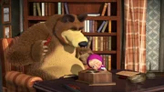 Mascha bewundert, wie der Bär eine Uhr repariert. Von nun an geht auch sie den Dingen auf den Grund und zerlegt, was immer ihr in die Hände fällt. Sie baut die Dinge auch wieder zusammen.