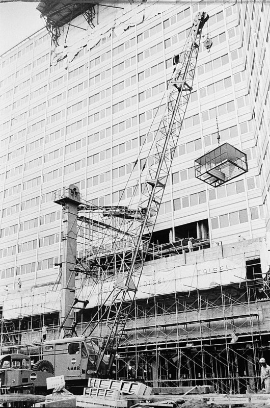 Archivbild eines Krans vor einem im Bau befindlichen Gebäude