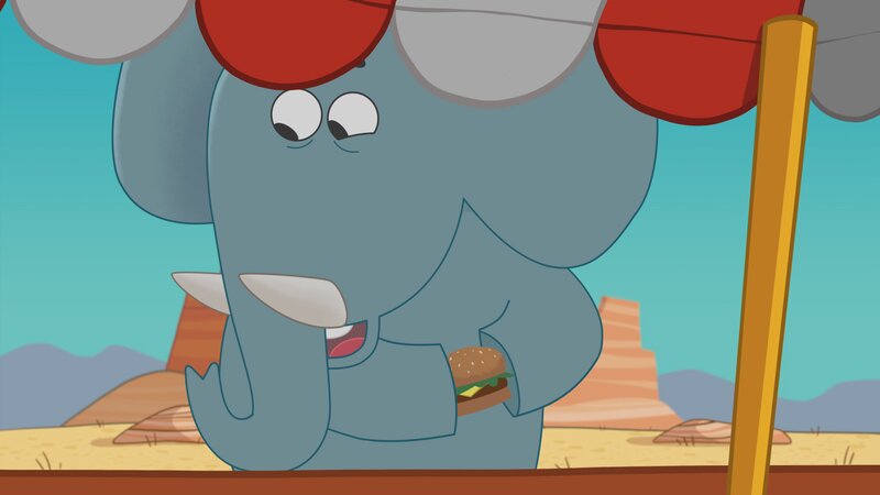 Den Cheeseburger, den Dog und Puck groß finden, ist für den Elefanten eher winzig.