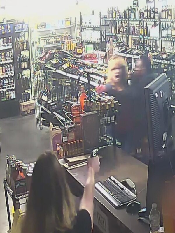 Mutter Tina und Tochter Ashley arbeiteten in ihrem Spirituosenladen, als ein maskierter Mann eindrang und sie mit einer Schrotflinte bedrohte. Was dann passierte, glich einem Albtraum: Der Bewaffnete griff in die Kasse und wollte mit der Beute abziehen, als die Frauen den Knopf drückten, mit dem sich die Innentür verriegeln lässt. Sie verriegelten jedoch aus Versehen die falsche Tür, die äußere - und der Dieb war gefangen.