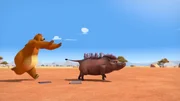 In der Hütte bricht ein Streit zwischen Grizzy, dem Bären, und den Lemmingen aus, als sie versuchen, das letzte Essen zu ergattern. Plötzlich taucht ein Warzenschwein auf und unterbricht den Streit, was zu einer unerwarteten Wendung führt.