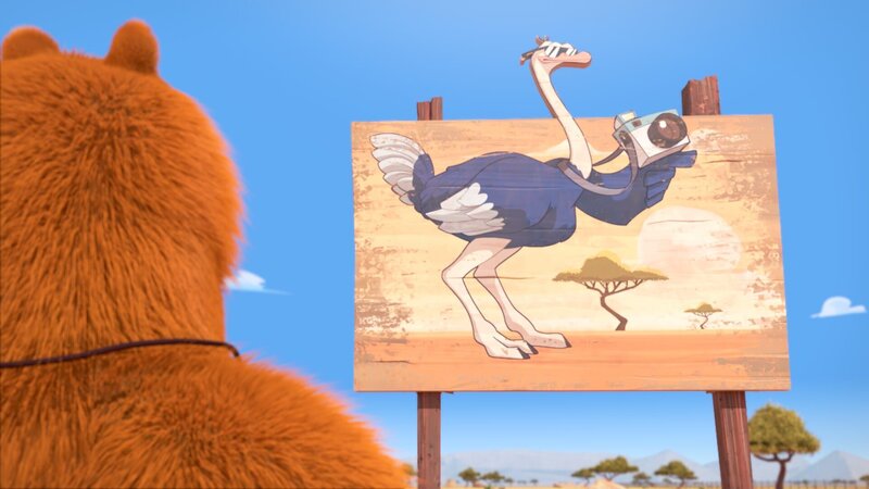Grizzy und die Lemminge nehmen an einem Safari-Fotowettbewerb teil, um eine Trophäe mit Schokolinsen zu gewinnen. Sie fotografieren verschiedene Tiere des Reservats, aber der superschnelle Somalistrauß stellt eine Herausforderung dar.