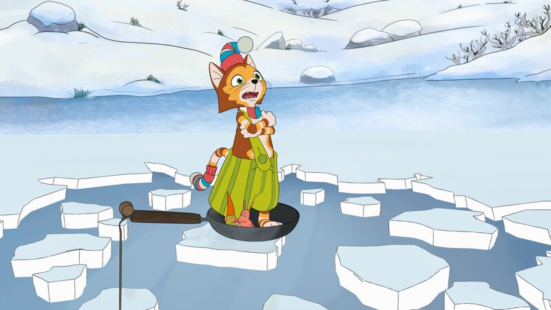• Findus ist froh: Obwohl das Eis auf dem Wintersee einbrach, ist er mit einem kleinen Schrecken davongekommen. Aber einen Schnupfen hat er sich dabei doch geholt.