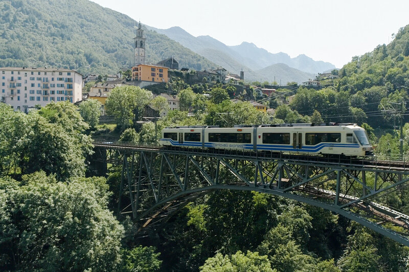 Die ersten drei Kilometer der Reise bleibt die Schmalspurbahn unterirdisch und erinnert eher an eine U-Bahn. Nach dem der Tunnel hinter sich gelassen wird, geht die Reise durch das Maggiatal weiter. An die steilen Felswände des Tals schmiegen sich typische Tessiner Lokale - die Grotti. Heute antik und privat, dienten die natürlichen Höhlen früher als kühlende Lagerhäuser zur Konservierung ländlicher Produkte.