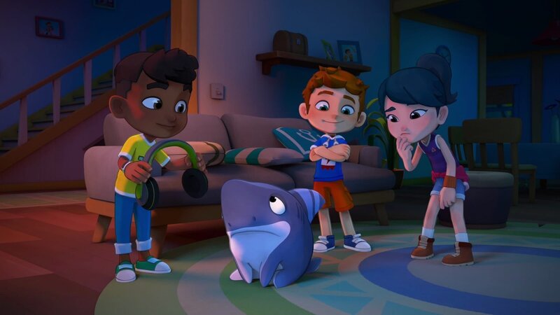 Während eines schrecklichen Sturms erschreckt sich Sharkdog und entkommt. Das bringt Moms Fernsehinterview in Gefahr.
