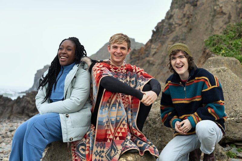 Alex (Otto Farrant, M.) lassen die Geschehnisse rund um Point Blanc nicht los. Jack (Ronke Adekoluejo, l.) und Tom (Brenock O'Connor, r.) glauben, dass ein Surftrip genau das Richtige für Alex ist, um endlich mal abzuschalten.