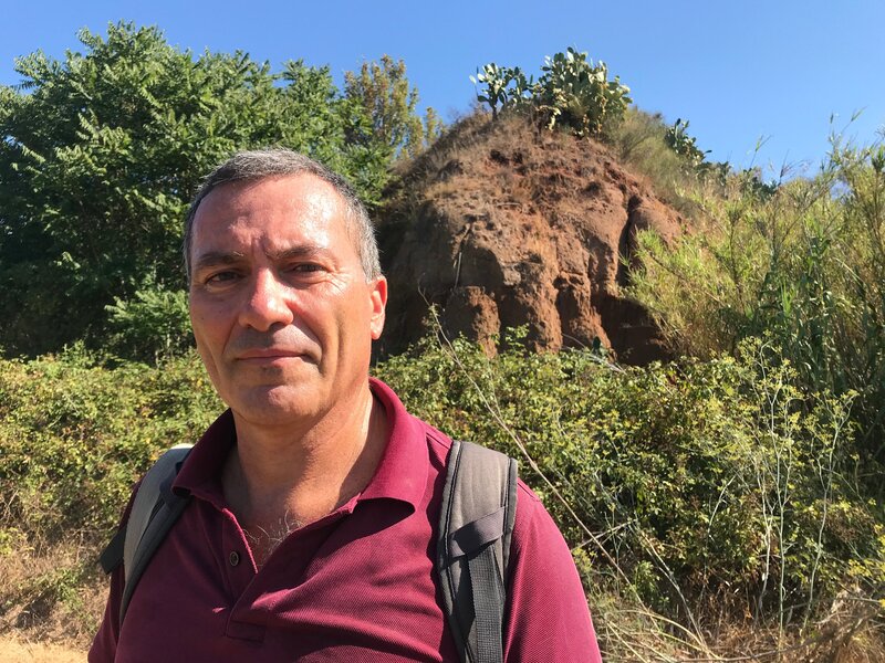• Guido Giordano vor einem vulkanischen Felsen (Landschaft).