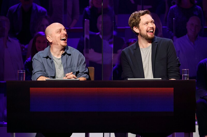 - Rateteam-Kapitän Bernhard Hoëcker (l.) und der Comedian Bastian Bielendorfer (r.) bilden ein Rateteam.Bild: © ARD/Morris Mac Matzen