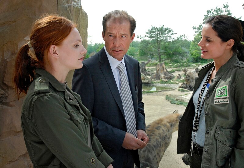 Eine Hyäne hinkt, behauptet Dr. Fährmann (Michael Lesch). Dr. Susanne Mertens (Elisabeth Lanz, rechts) und ihre Assistentin Anett (Anna Bertheau) sind skeptisch.