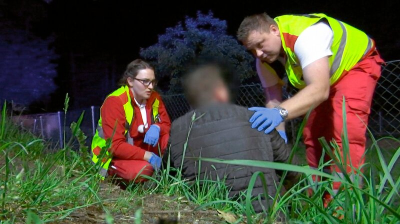 Die Sanitäter Laura Peter und Michael Michalowicz vom Deutschen Roten Kreuz Fulda sorgen sich um ihren jungen Patienten.