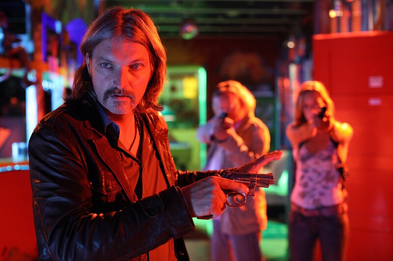 "Soko Donau", "Gefallene Engel." Die 16jährige Cora findet am Donaukanal, unweit des Szenelokals Voom, einen männlichen Toten. Das geschockte Mädchen kennt den Toten: Es ist der Türsteher Ronnie Pertlik. Am Fundort wartet auf Ribarski eine Überraschung. Der neue Besitzer des Vooms, Ferry Kästner, ist ein alter Freund aus Jugendtagen. Das Voom war viele Jahre der Drogentempel Wiens. Ferry behauptet, er habe Ronnie angewiesen, Drogen von seinem Lokal fernzuhalten. Bei den Ermittlungen stößt das SOKO-Team auf Lili, ein Mädchen, das ein besonders enges Verhältnis zum Mordopfer gehabt haben soll. Im Bild (v.li.): Lilian Klebow (Penny Lanz), Stefan Jürgens (Carl Ribarski), Gregor Seberg (Helmuth Nowak).