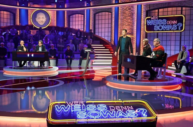 Moderator Kai Pflaume und seine Rateteam-Kapitäne Bernhard Hoëcker und Elton begrüßen in dieser Sendung Co-Moderator der NDR Talkhow "3 nach 9" und Chefredakteur der Wochenzeitung "Die Zeit" Giovanni di Lorenzo und die Co-Moderatorin der NDR Talkhow "3 nach 9" und Journalistin Judith Rakers.