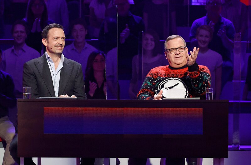 Rateteam-Kapitän Elton (r.) und der Trompeter Till Brönner (l.) bilden ein Rateteam.Bild: © ARD/Morris Mac Matzen