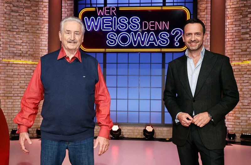 Rateteam-Kapitän Bernhard Hoëcker und der Trompeter Ludwig Güttler bilden ein Rateteam.Bild: © ARD/Morris Mac Matzen