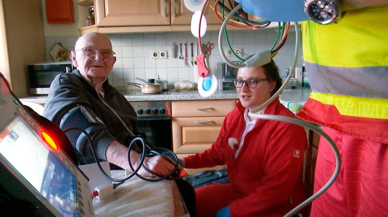 Reporter begleiten Rettungsassistenten, Notärzte, Mediziner und Pflegekräfte in der Notfallambulanz. So auch die Notfallsanitäterin Laura Peter vom Deutschen Roten Kreuz, die in Fulda zu einem Patienten mit Atemnot gerufen wird.