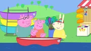 Peppa und ihre Familie unternehmen eine Kanufahrt. Doch die Fahrt wird turbulent, weil die Strömung immer heftiger wird und sie es nicht schaffen zurückzurudern. Zum Glück ist Frau Krokodil zur Stelle und hilft ihnen.
