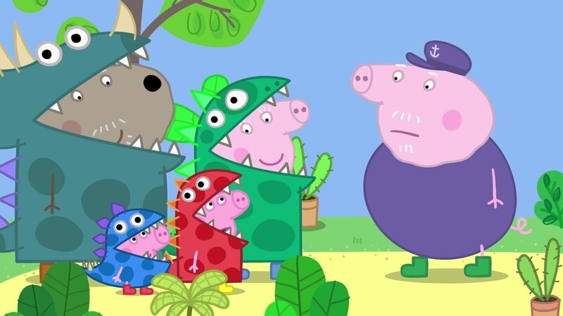 Peppa und Schorsch sind heute zum Spielen bei Oma und Opa Wutz, die mit ihren Freundinnen und Freunden ein historisches Rollenspiel veranstalten. Alle sind als Dinosaurier verkleidet und so wird das Rollenspiel zu einer großen Party.