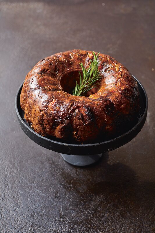 Dreierlei Sorten Fleisch: gefülltes Brathuhn, gerollter Schweinsbauch und Rinderrollbraten.