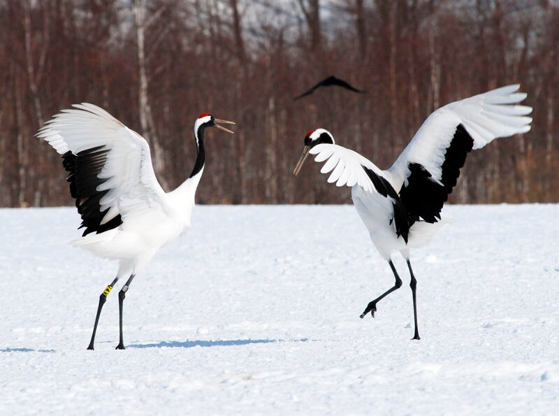 Allein 2.000 Riesenseeadler überwintern auf Hokkaido, Japans nördlichster Insel. In eisfreien Meeresbuchten und Vulkanseen versammeln sich Scharen von schneeweißen Singschwänen und balzen bei Eiseskälte um einen Partner für die nächste Brutsaison in der fernen Taiga. Nordjapan ist in den Wintermonaten aber auch Anziehungspunkt für einen der seltensten Vögel Asiens: den Mandschurenkranich.
