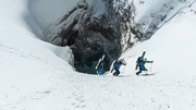 Eine Skitour durch die spektakulären Karstbögen am Grand Ferrand bei Grenoble bringt drei Tiroler auf die Idee einer Skitour nicht außen am Berg sondern durch den Berg. Bald haben die Extremskifahrer ihr Ziel gefunden: in Slowenien führen die Höhlen der ‚Poloska Jama' 500 Meter durch den Berg ‚Krn' auf den Gipfel. Für Höhlenforscher ist die Begehung der Höhle ein Grenzgang - erst recht für die jungen Abenteurer aus Österreich, die keine Erfahrung mit weit verzweigten Höhlensystemen haben.