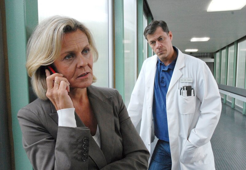 Christine Herzog vom Jugendamt (Andreas L’Arronge, l.) und Dr. Christoph Lentz (Sven Martinek, r.) warten schon geraume Zeit ungeduldig auf Luisas Eltern. Frau Herzog wird von ihrem Amtsleiter darüber informiert, dass die Eltern ihre Therapie abgebrochen haben und nicht auffindbar sind.