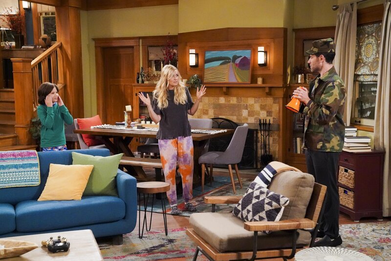 (v.l.n.r.) Grover Johnson (Hank Greenspan); Gemma Johnson (Beth Behrs); Dave Johnson (Max Greenfield)