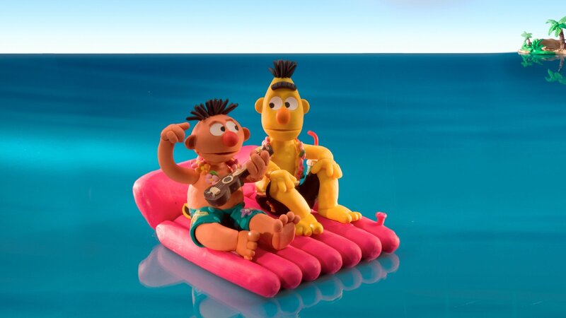 Ernie und Bert machen Urlaub auf Hawai. Auf ihrer Luftmatratze treiben sie auf das offene Meer hinaus, doch sie können sich auf eine einsame kleine Insel retten. Nur wie kommen sie von dort wieder zurück aufs Festland? Dass ein kleiner Krebs auch noch ein Loch in ihre Luftmatratze schneidet, macht die Sache nicht gerade einfacher...