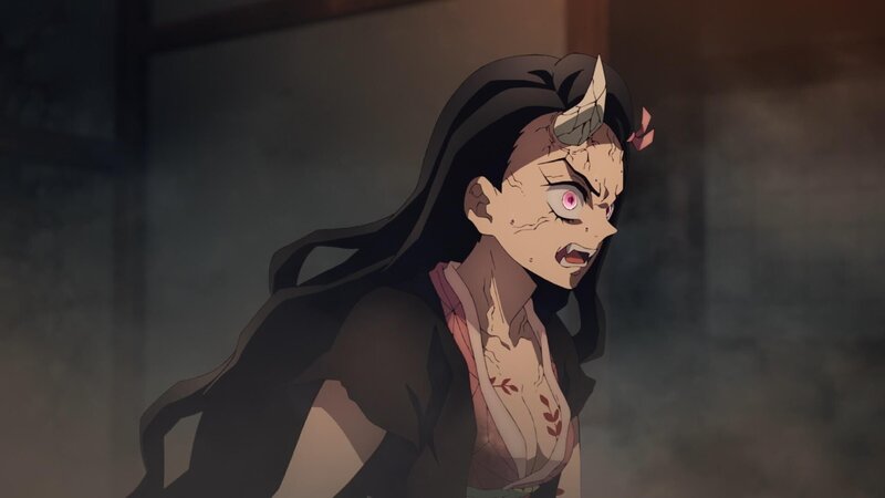 Nezuko eilt ihrem Bruder zu Hilfe und verwandelt sich in ihre Dämonenform. In dieser stärkeren Gestalt nimmt sie den Kampf mit Daki auf. Da sie sich jedoch nicht unter Kontrolle hat, muss Tanjiro eingreifen, um seine Schwester zu bändigen.