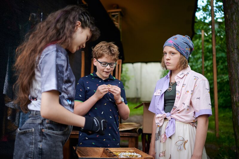 Joyce (Matilda Willigalla, r.,) ist sauer. Warum haben manche Leute so unendlich viel Geld und andere gar nicht? Während der Theaterprobe mit Marlon (Matti Schneider, M.) und Io (Clara Jaschob, l.) lässt sie ihrer Wut freien Lauf.