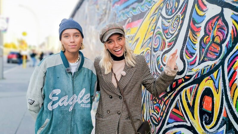Nur ein längeres Stück Mauer steht noch! Lisa und Lena an der East Side Gallery.