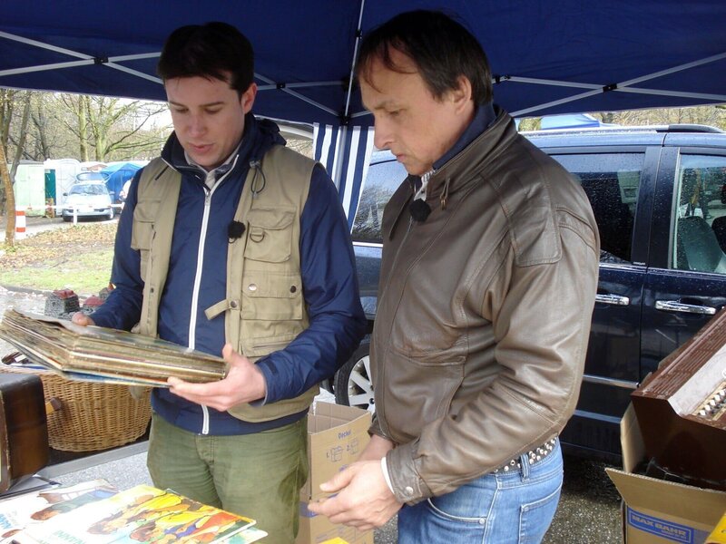 • Antoine Richard merkt schnell, dass hier nicht nur sein Wissen als Trödelexperte gefragt ist. Er versucht Jörg davon zu überzeugen, dass man sich von alten Werbesendungen oder Kalendern aus dem Jahr 2002 getrost trennen kann...